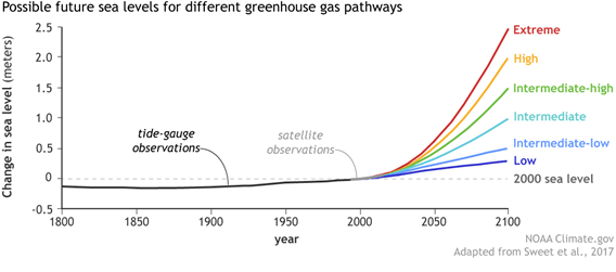 ¿Y sabéis que es lo peor? Que la inercia de este sistema es tan, TAN grande, que incluso si dejásemos de emitir gases de efecto invernadero hoy mismo, el nivel del mar seguiría subiendo ~50 cm más hasta final de siglo. Ese sería el mejor de los escenarios, ¿en el peor? Al loro: más de 2 metros (ya, es muy preocupante).