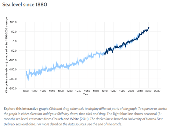 Pero sin duda el cambio climático pone un contexto que ayuda a que más zonas se sumerjan: contribuye a que haya más agua en el océano y a que se expanda por calor. No es cosa del futuro. Se estima que el nivel medio del mar ha subido más de 20 cm desde 1880.