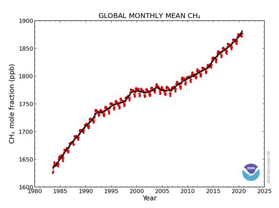 Ahora sí, ¡empiezo! Al igual que con el CO2, las concentraciones de metano en la atmósfera están aumentando en las últimas décadas. Esto es bastante problemático ya que el metano es un gas más potente que el CO2, aunque permanece menos tiempo en la atmósfera.